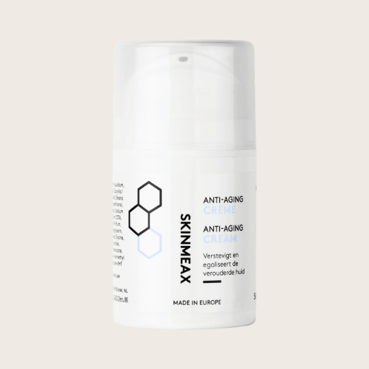De anti-agingcrème van Skinmeax onderscheidt zich op meerdere fronten. Zo bevat deze retinol, een ingrediënt dat wetenschappelijk bewezen effectief is tegen huidveroudering. In mijn praktijk zie ik vaak dat patiënten moeite hebben met crèmes die retinol bevatten, vanwege huidirritatie. Dit is begrijpelijk, maar vaak ik de huid dan reeds al geïrriteerd. Het is jammer dat mensen hierdoor soms stoppen met het gebruik van juist zulke goede ingrediënten. De Skinmeax Anti-Aging Crème is ontwikkeld met een formule die bijzonder aangenaam is in gebruik – ook voor mensen met een gevoelige huid. Een tweede belangrijk ingrediënt is Schizophyllan. Deze natuurlijke stof verhoogt de Natural Moisturizing Factor (NMF) van de huid en stimuleert celvernieuwing. Vooral de ondersteuning van de collageenaanmaak is nuttig voor het verminderen én voorkomen van rimpels.